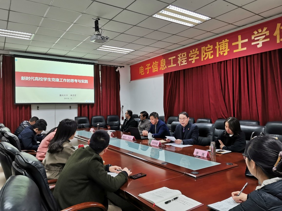 本次培训邀请到重庆大学环境与生态学院党委书记蒲清平教授为党支部书记进行专题培训,蒲书记以《新时代高校党建工作的新思考与新实践》为主题,从“加强理想信念教育,思想强党”、“提升党务工作水平,组织强党”、“完善党内规章制度,制度强党”和“创新党务工作方式,活动强党”四个方面进行讲授。同时,蒲书记结合所在学院实际和多年基层党建工作的实践,围绕推进支部管理规范化、推进三会一课规范化、推进党员发展规范化和推进党员教育规范化四个方面分享了提升党建工作水平的经验。