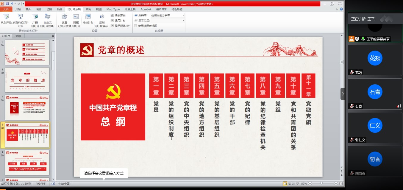 通过本次学习,进一步加深了大家对“学党章,担使命,助力返校复学”这一主题的体会和理解。