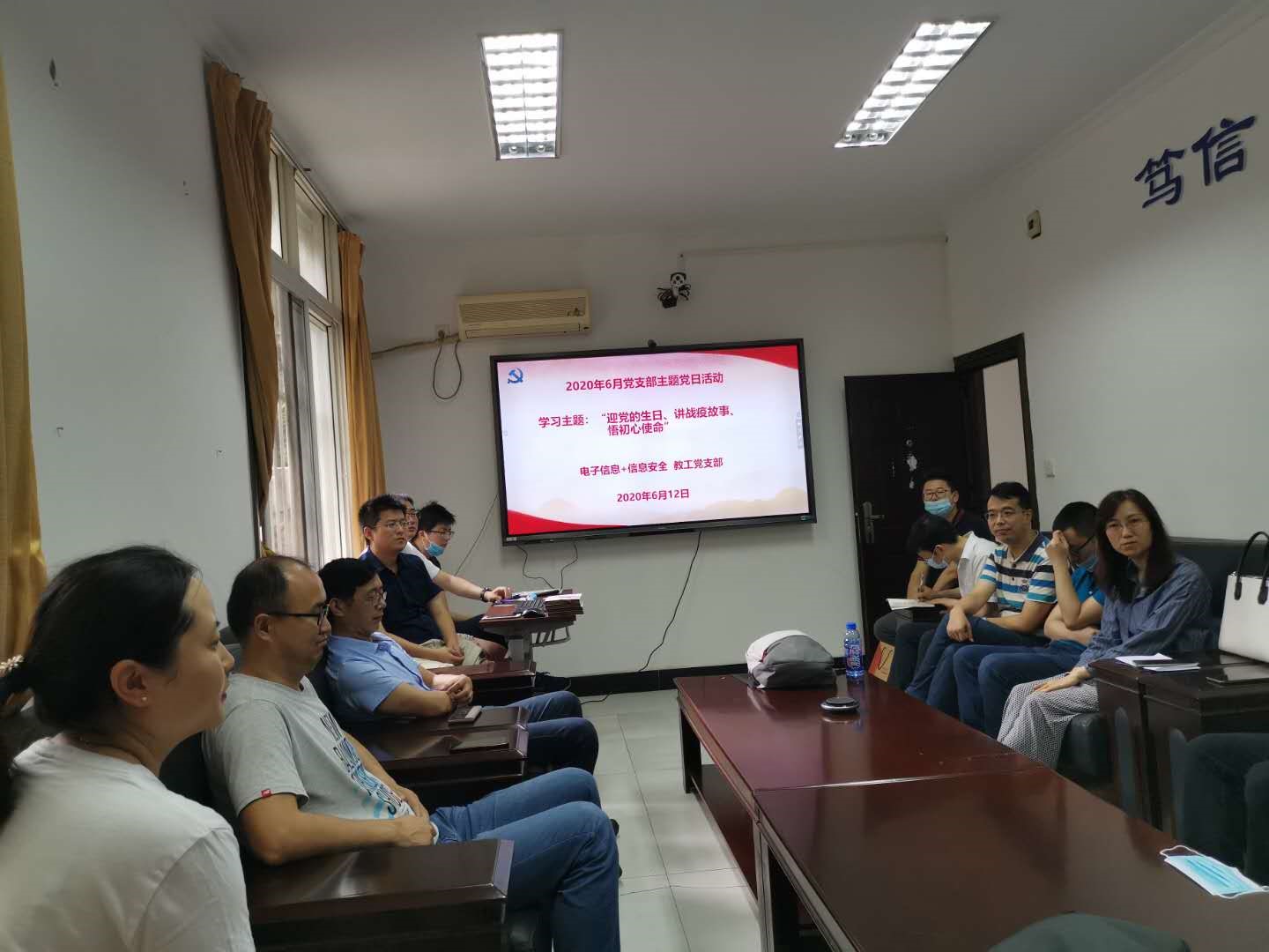 6月12日下午,教工一支部和教工四支部联合开展了以 “迎党的生日、讲战疫故事、悟初心使命”为主题的党日活动。会议由教工一支部书记何兴主持。