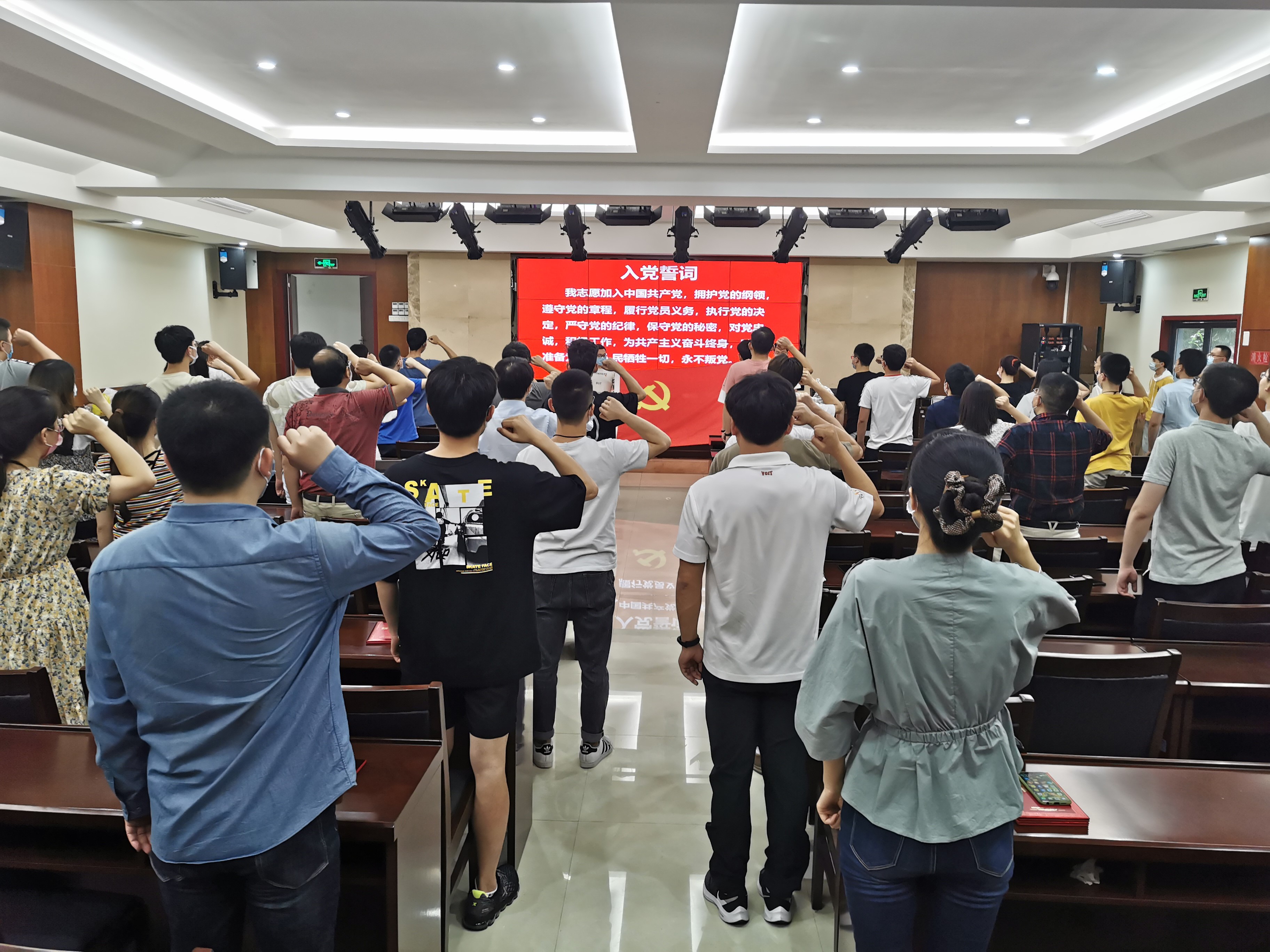 随后,全体新党员面向党旗庄严宣誓,面对鲜红的党旗立下铮铮誓言,表达对党的无限忠诚和为党的事业奋斗终生的决心,老党员也在阵阵誓词声中重温了入党时的激情与豪迈。在庄严的宣誓中,全体党员牢记入党誓词,接受了一次深刻的党性教育,增强党性观念,强化责任担当,坚定理想信念。