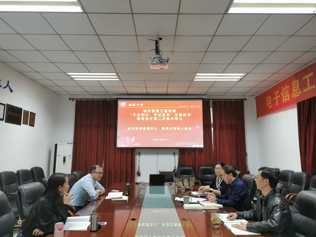 为深入学习贯彻习近平新时代中国特色社会主义思想,扎实开展“不忘初心、牢记使命”主题教育,10月11日下午,学院领导班子在三楼会议室开展“不忘初心、牢记使命”主题教育第二次集中学习研讨。党委书记毕均明主持学习。