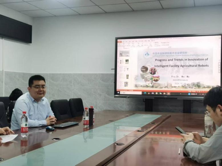 为深化科研学术交流、推动学科融合发展,2025年3月27日,受学院院长李鸿一教授邀请,中国农业科学院都市农业研究所智能园艺机器人团队首席科学家马伟教授,围绕“智能设施农业机器人创新进展与趋势”作专题学术报告。学院黄军建教授、王欣教授及学院研究生代表共同参与学术讲座。王欣教授代表学院对与会嘉宾和师生表示诚挚感谢和热烈欢迎。